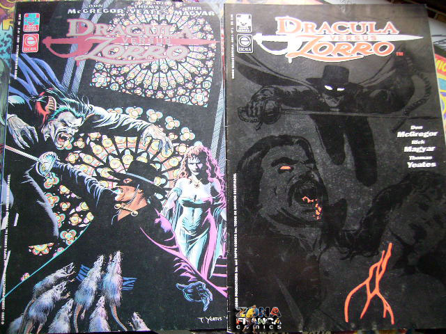 Em 1993 a Editora Escala leva as bancas uma mini em duas partes que reuniria dois grandes personagens da literatura popular: Drácula e Zorro!