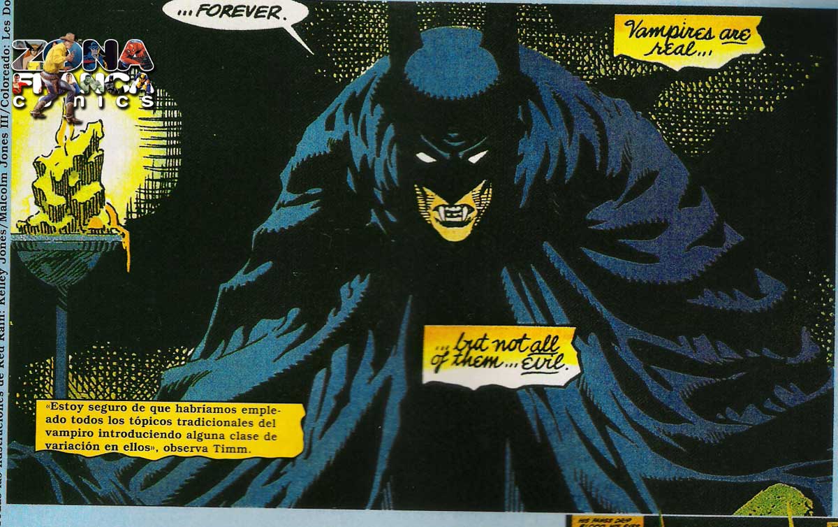 Batman e os vampiros estão conectados desde os primeiros números do titulo DETECTIVE COMICS. Um dos seus primeiros adversários foi o MONGE que vampirizava suas vitimas. Nesta fase do personagem ele chegou a usar uma arma contra os capangas do Monge.