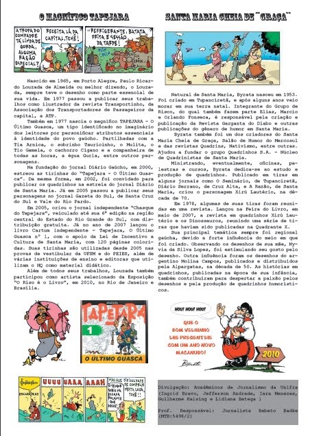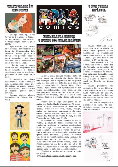 abraços a todos e obrigado ao pessoal do jornalismo da Unifra por mais esta força e por estar sempre do lado de quem curte e transpira quadrinhos.