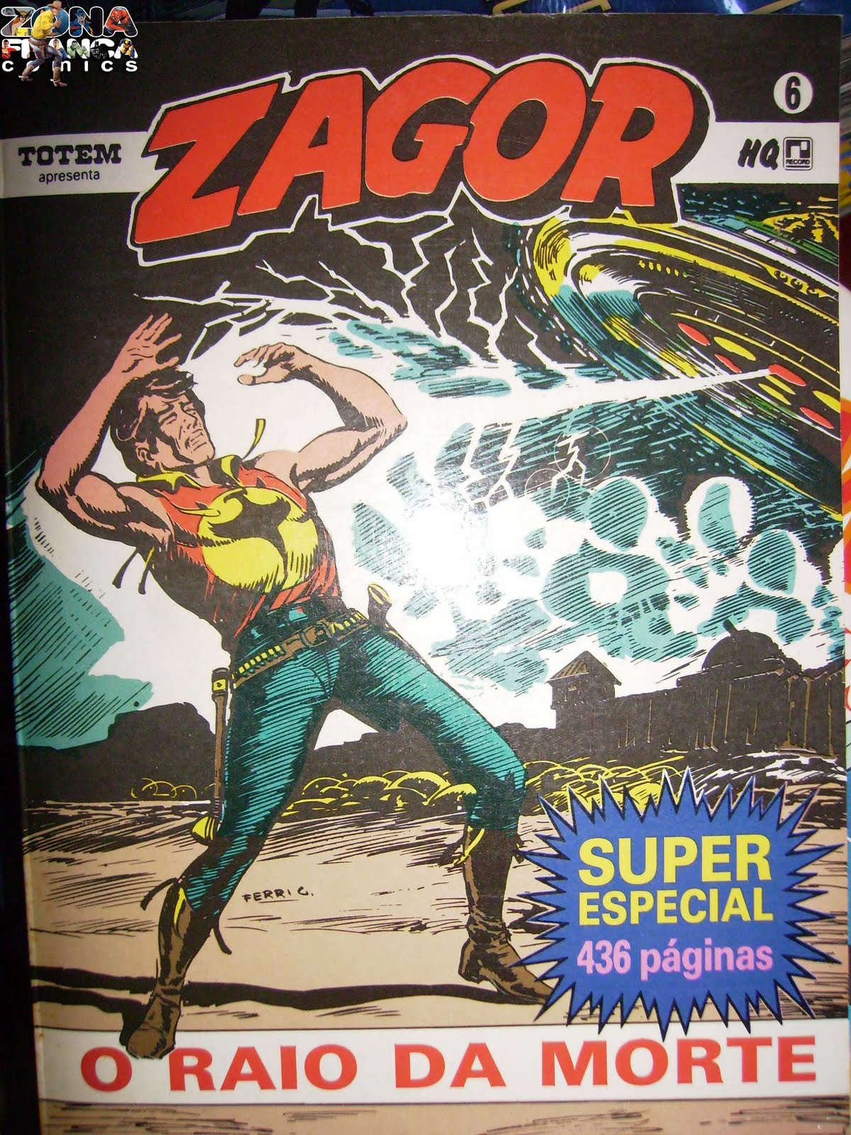 proporcione uma grande mídia como a televisão, por exemplo os MANGÁS, fiquei pensando como é que alguns editores antes conseguiam esta enorme proeza. E mais ainda, como é que alguns destes editores atreviam-se a lançar aqui no Brasil edições como esta ZAGOR Nº 06 - O RAIO DA MORTE! um fantástico tijolo de mais de 400 paginas. Hoje isto é algo totalmente impensado pelos detentores atuais do direito de publicação do personagem por aqui. É por isto que se diz que a RECORD foi a editora que melhor tratou os fãs do personagem criado por Sergio Bonelli e G. Ferri. Até hoje o RAIO DA MORTE permanece como a maior edição de um titulo Bonelli publicado aqui neste nosso Brasil.