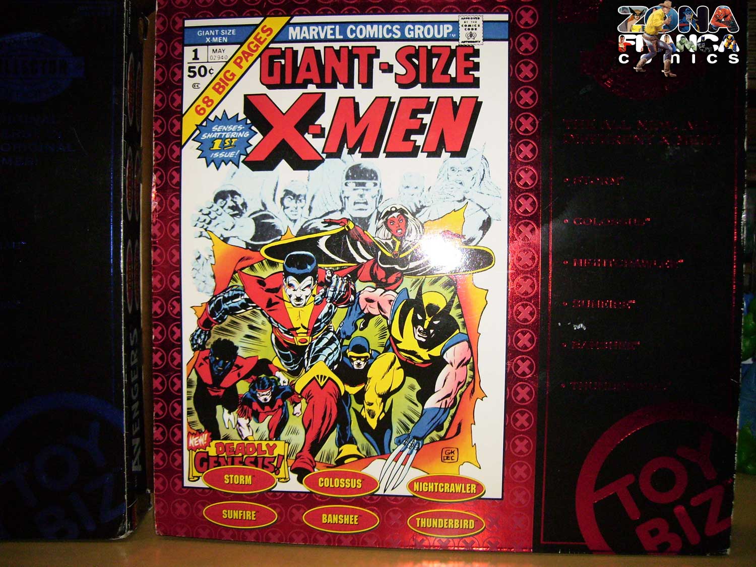 coisas legais, que a ZONA FRANCA COMICS vai esquecer da CASA DAS IDÉIAS! Somos aqui demograticos e apreciadores do que de melhor estas duas casas editoriais podem oferecer ao colecionador. E a Marvel tem uma vasta tradição em levar para outras mideas suas maiores personagens. E não estou falando do cinema!Desde muito tempo que os "bonequinhos" da Marvel fazem um enorme sucesso com os colecionadores. Agora estamos disponibilizando um item muito especial :GIANT-SIZE X-MEN MARVEL COLLECTOR EDITIONS - Um box set com 06 figuras dos personagens que formaram a nova equipe dos fabulosos X-MEN: TEMPESTADE,COLOSSSUS, NOTURNO, BANSHE, PASSÁRO TROVEJANTE e SOLARIS!
