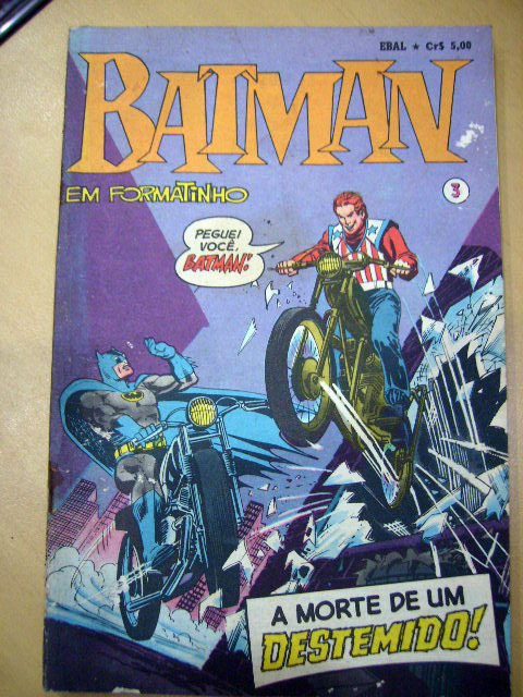BATMAN em FORMATINHO da editora Ebal. Outro dia estava falando aqui na loja com um amigo que nesta época dois dos lugares que vendiam revistas em uruguaiana e que eu mais freqüentava eram A BORBOLETA e a BANCA DO ESPANHOL. A Borboleta, por ser mais "profi" trazia as novidades e tinha todos os lançamentos e revistas de informação. Mas o quente mesmo era a Banca do Espanhol, no largo da antiga rodoviaria...Lá a gente fazia a festa, revirando as pilhas de revistas da Ebal, Bloch, Abril e Vecchi. Foi ali que eu comprei meus primeiros formatinhos a cores da Ebal: BATMAN, SUPERMAN, SHAZAM, TARZAN, e REIS DO FAROESTE com o JONAH HEX...